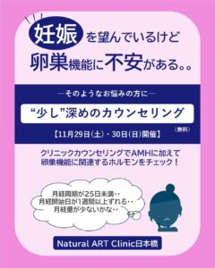 卵巣機能に不安がある方に向けた、少し深めのカウンセリングを実施いたします。